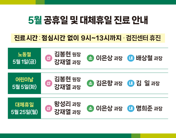 "공단검진, 종합검진, 여성검진, 영유아검진, 채용검진등 온가족 토탈 검진을 제공하고 있습니다."