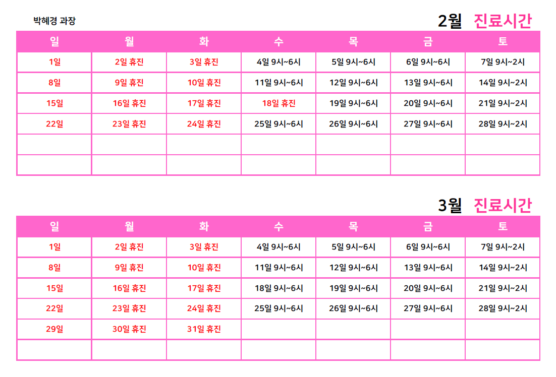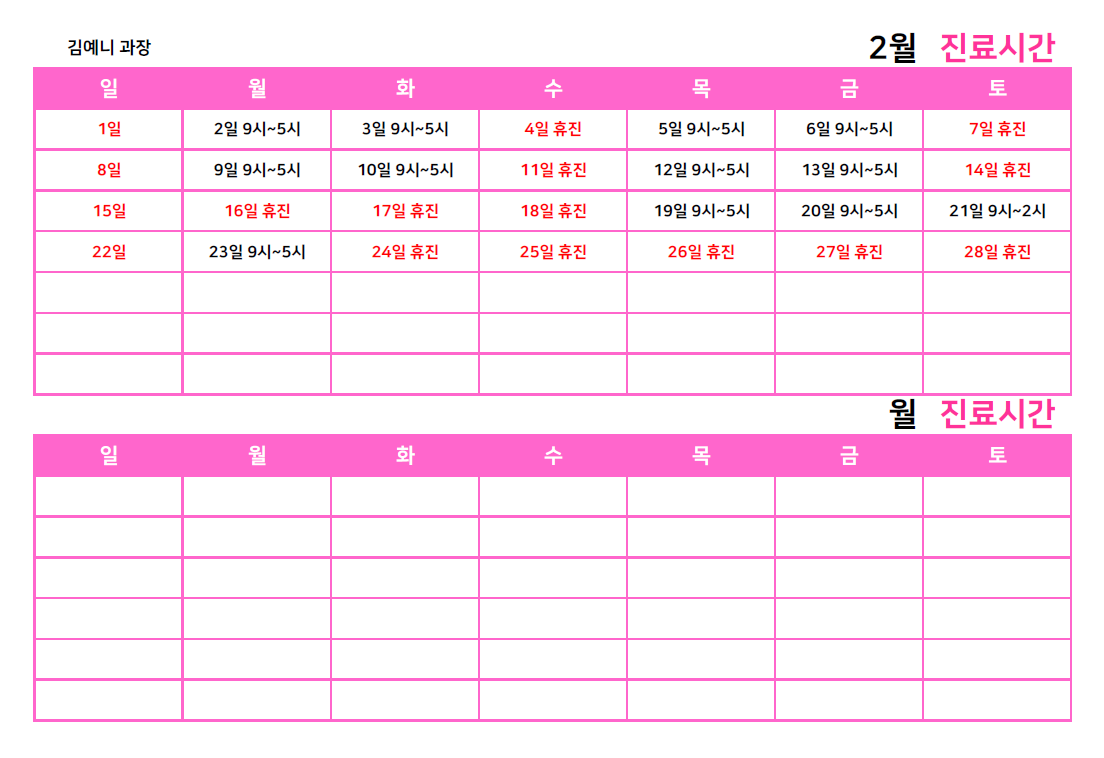 산부인과 2026년 2월 스케줄 안내드립니다.