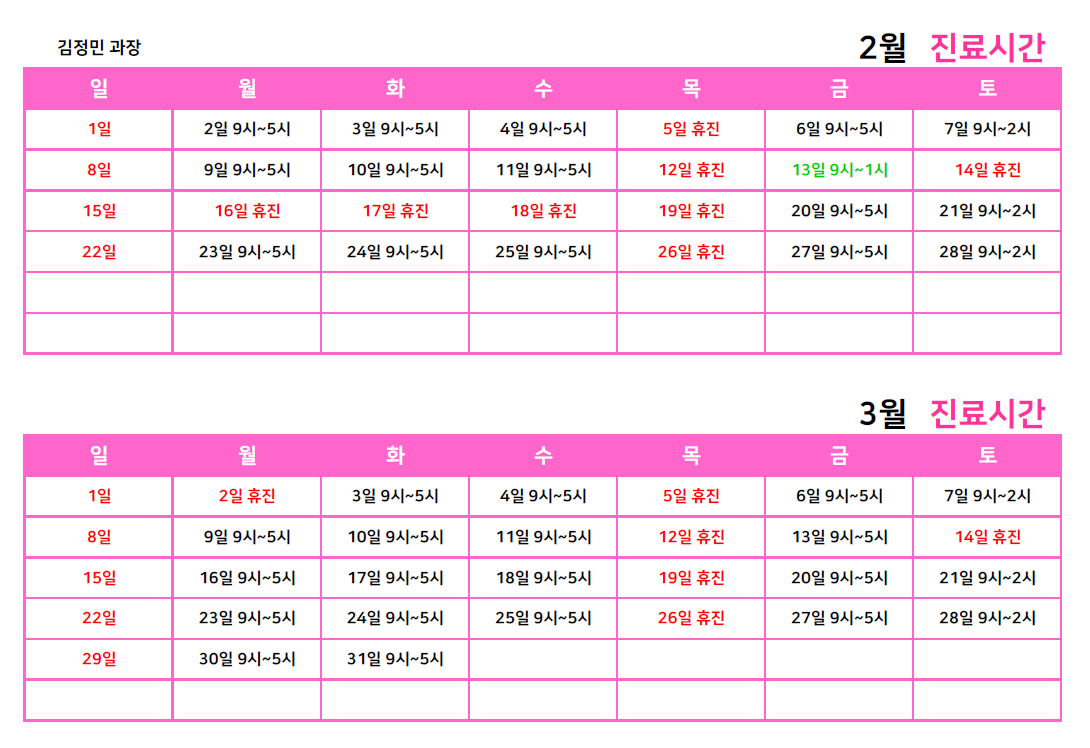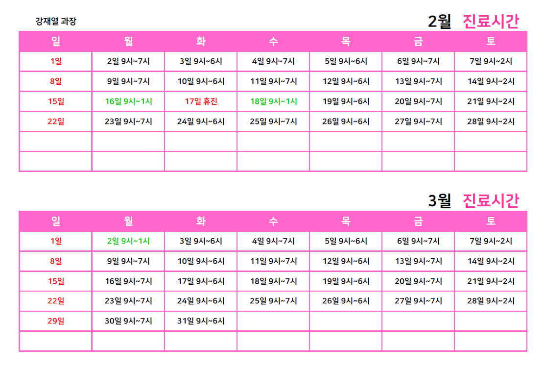 [산부인과] 2월 진료 안내 (2025.1.28업데이트)