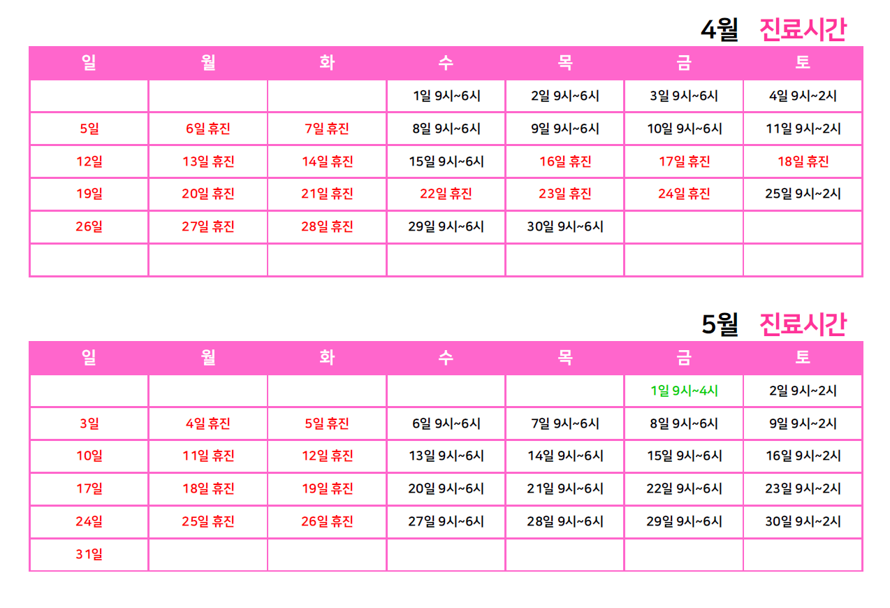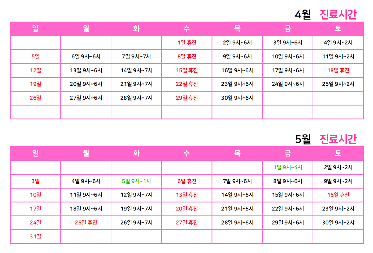 산부인과 2026년 4월 스케줄 안내드립니다.