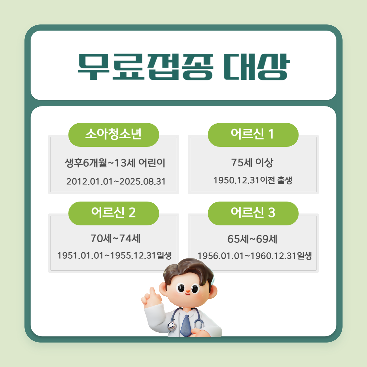2025년 독감(인플루엔자)예방 무료& 유료 접종 안내드립니다.
