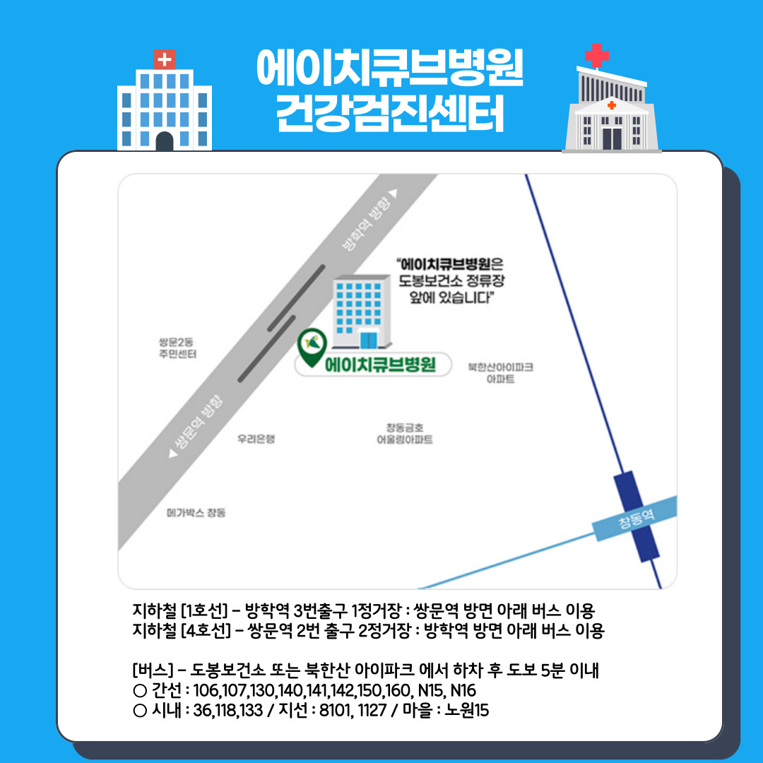 * 자세한 문의는 에이치큐브병원 검진센터로 연락 주시길 바랍니다 02-6911-7200