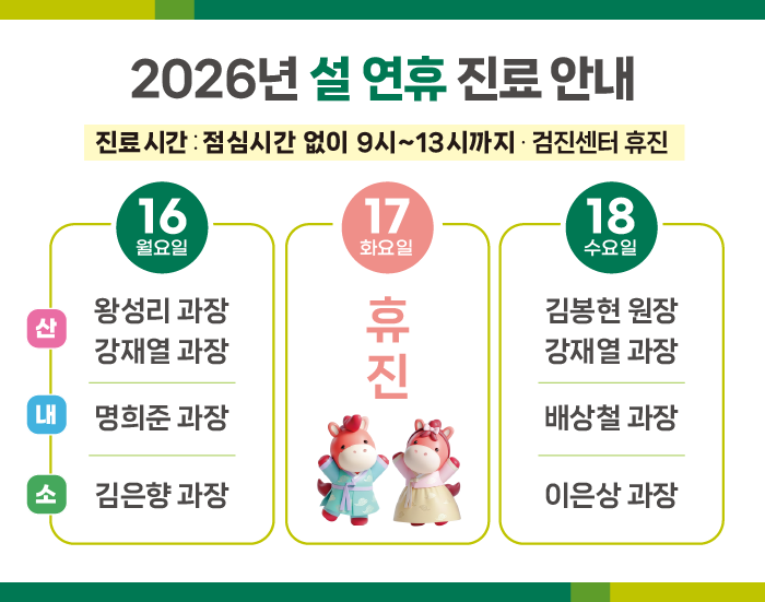 "공단검진, 종합검진, 여성검진, 영유아검진, 채용검진등 온가족 토탈 검진을 제공하고 있습니다."