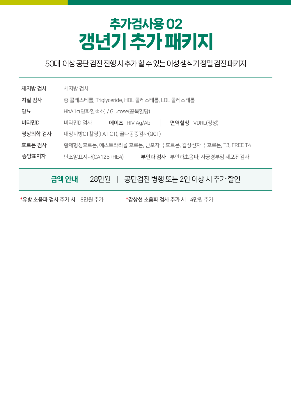 | 갱년기 심플 추가 패키지 | 50대 이상에 갱년기에 접어드는 여성들을 위한 검진 패키지 | JPG 파일 |