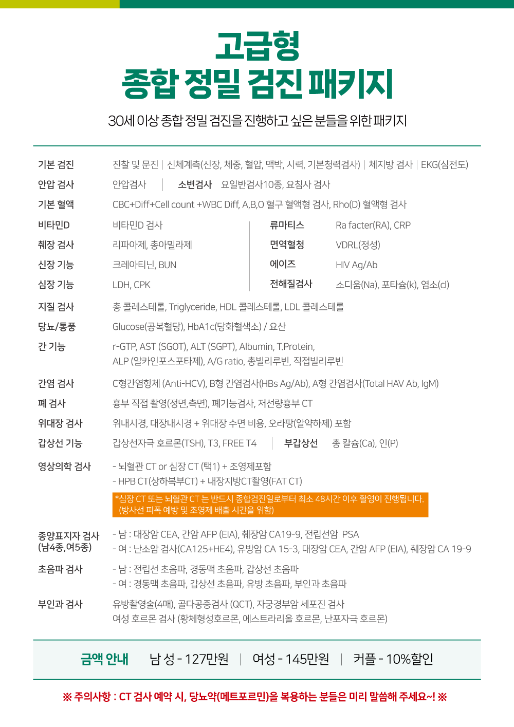 | 고급형 종합 정밀 검진 패키지 | 30세 이상 종합 정밀 검진을 진행하고 싶은 분들을 위한 패키지 | JPG 파일 |