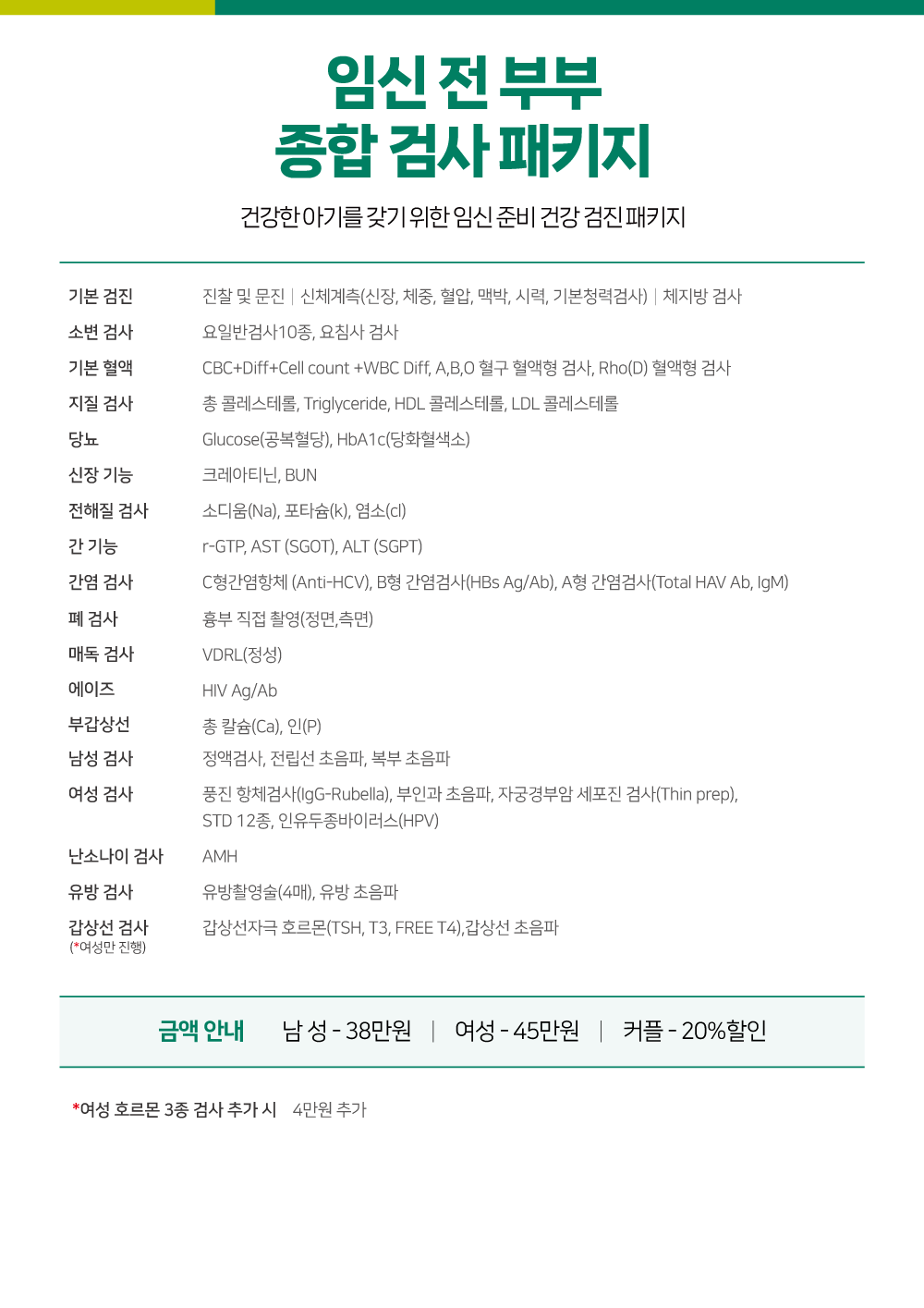 | 임신 전 부부 종합 검사 패키지 | 건강한 아기를 갖기 위한 임신 준비 건강 검진 패키지 | JPG 파일 |