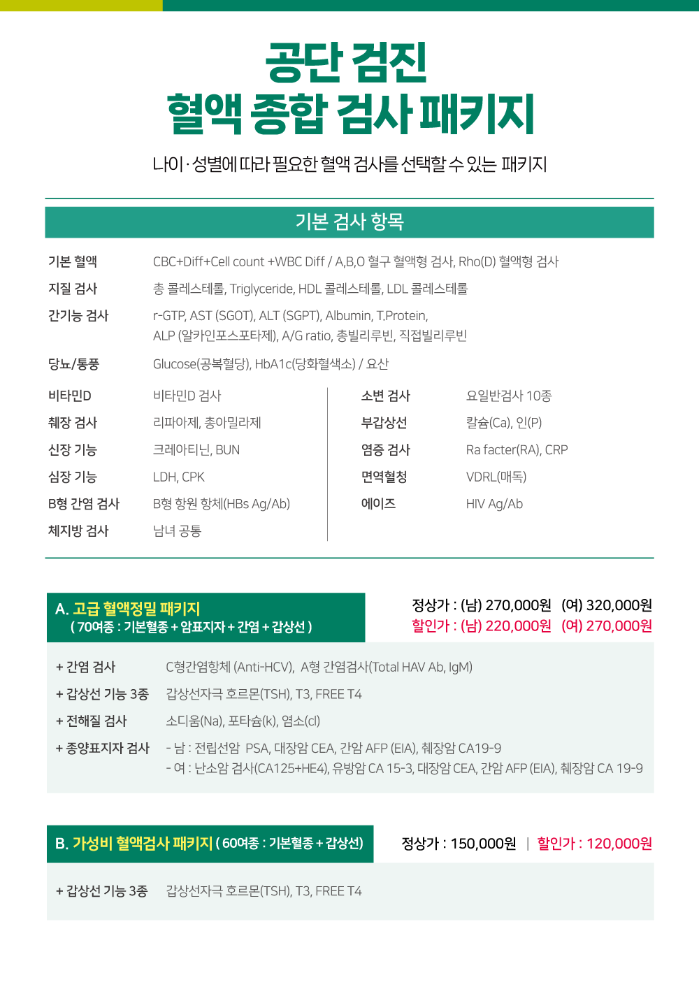 | 혈액 종합 검진 패키지 | 혈액만으로 80가지 검사를 진행하여 이상 유무를 발견하는 검사 | PNG 파일 |
