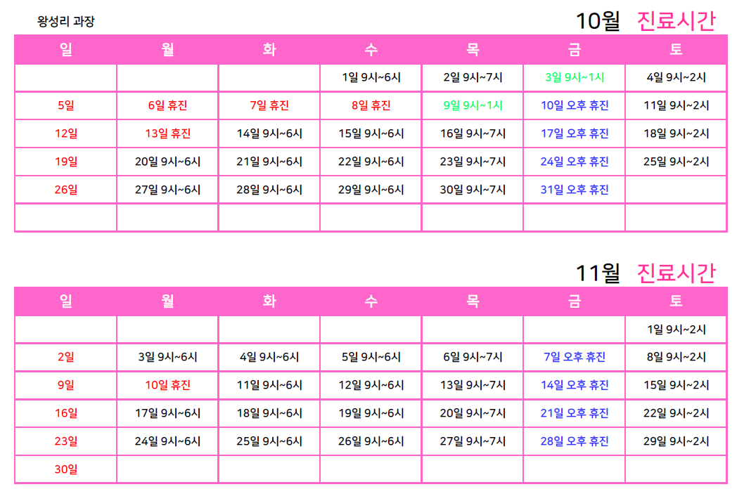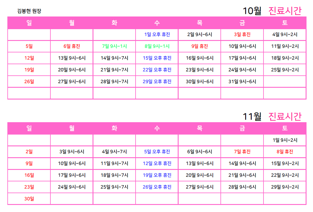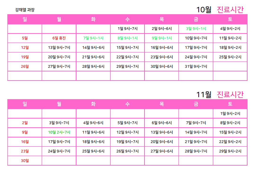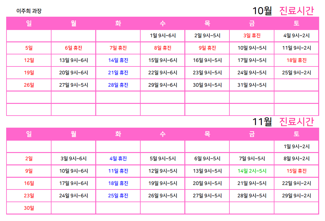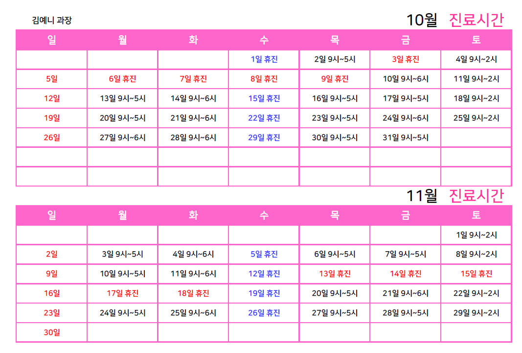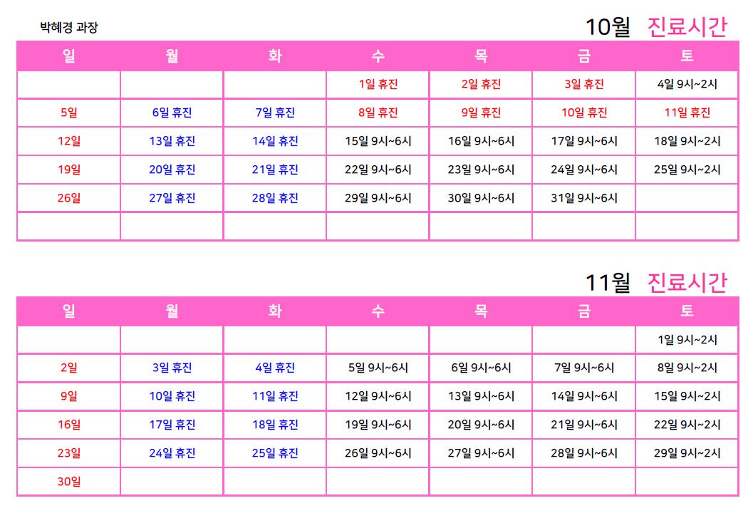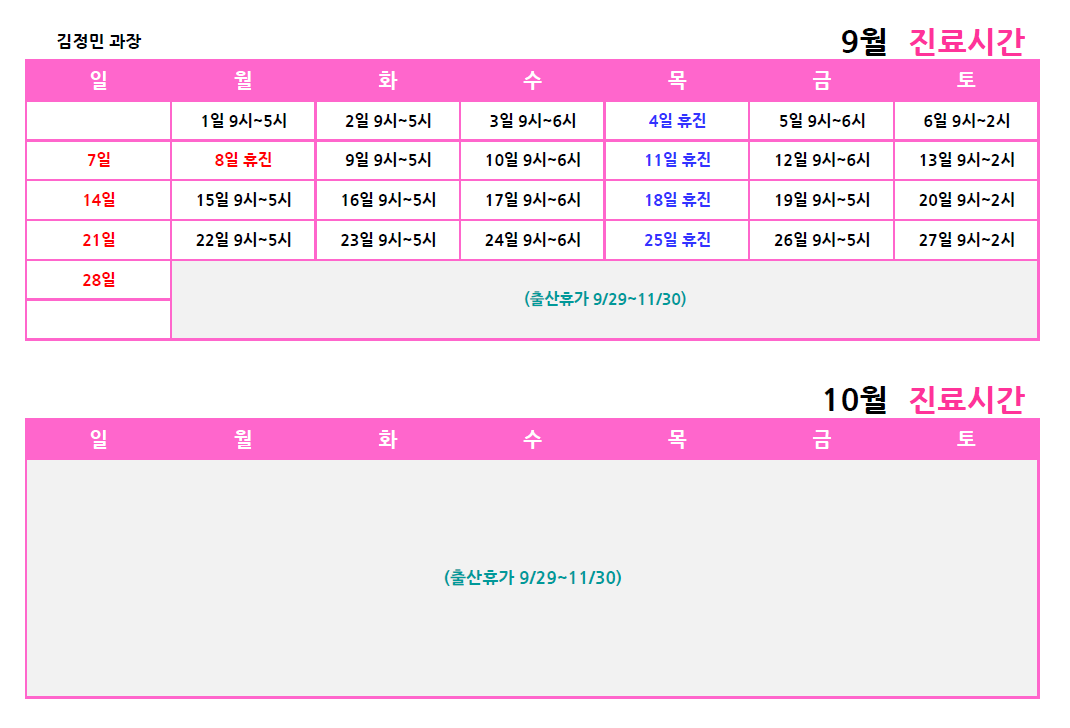 산부인과 2025년 10월 스케줄 안내드립니다.