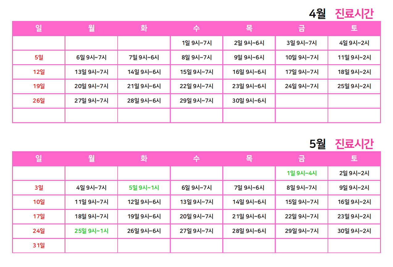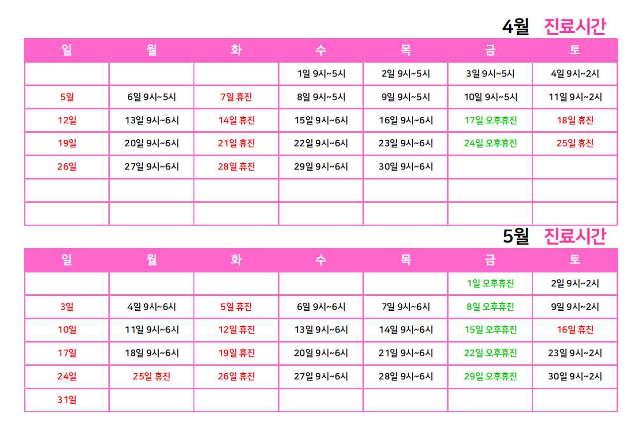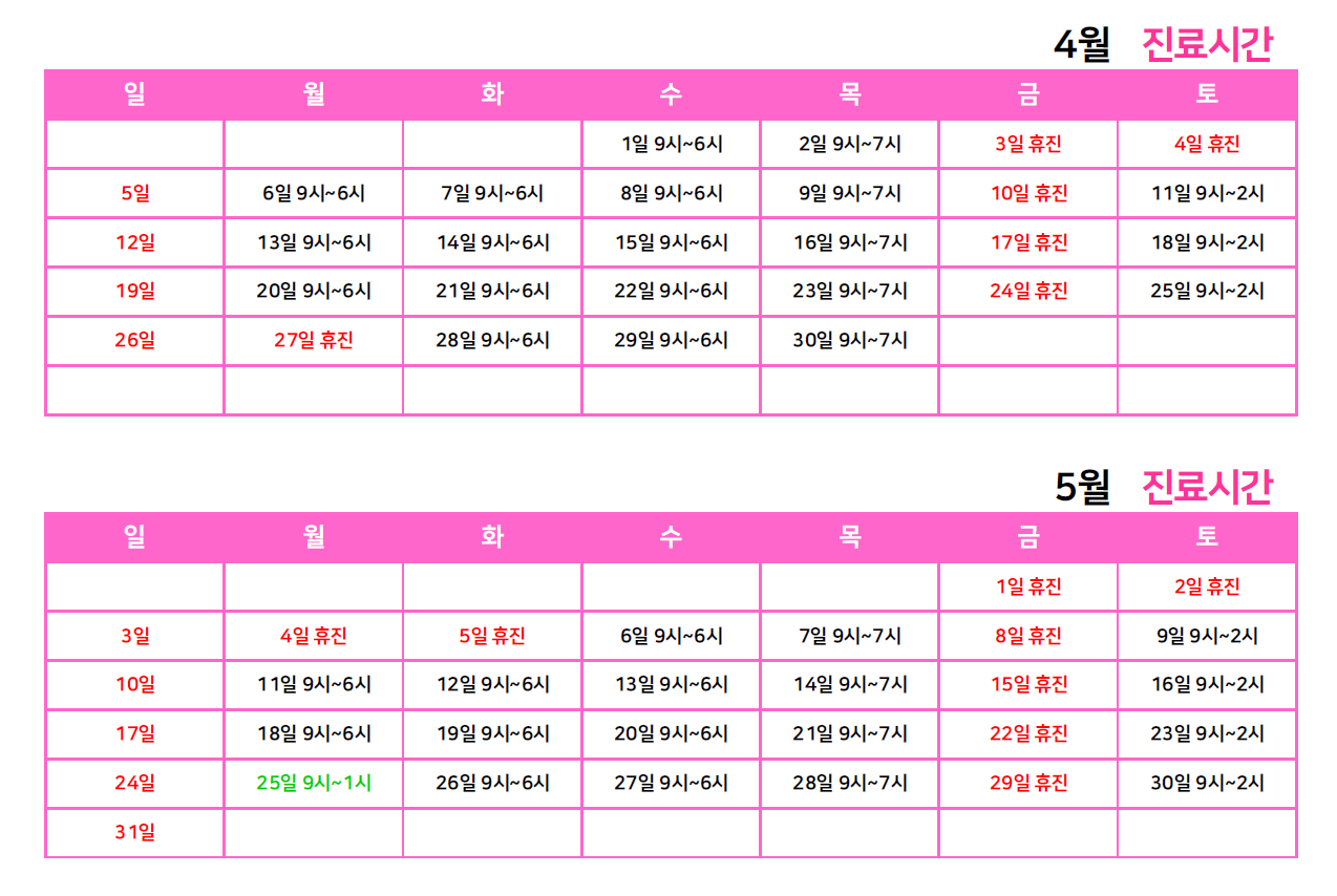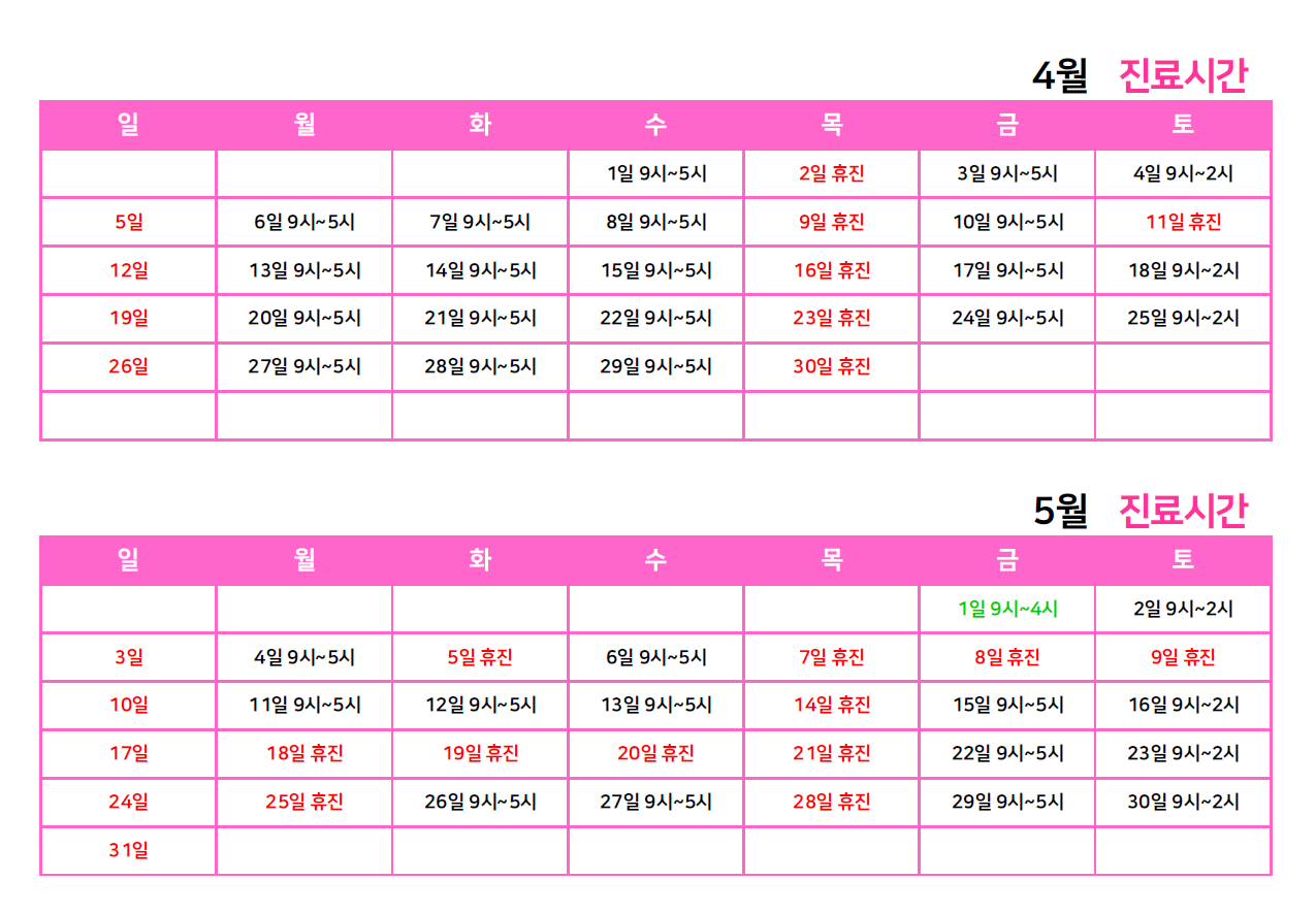 산부인과 2026년 4월 스케줄 안내드립니다.