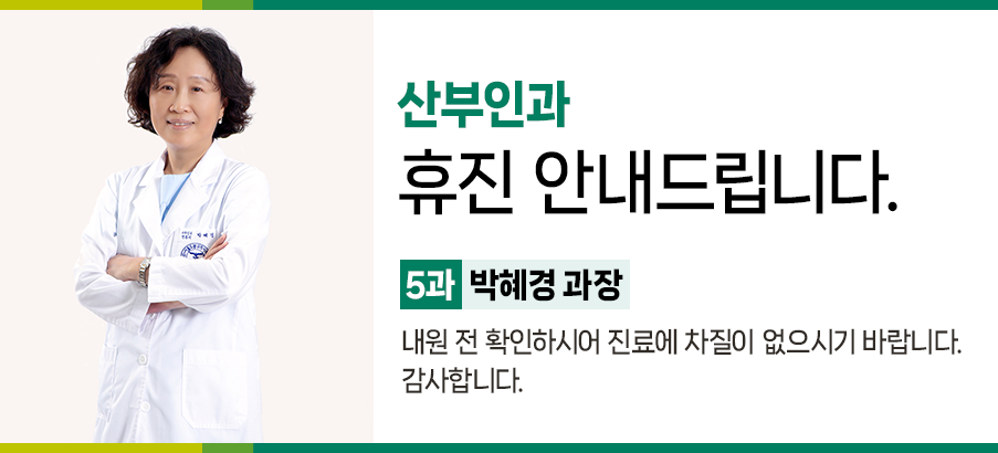 [산부인과] 박혜경 과장 10/1(수)~10/2(목), 10/10(금)~10/11(토) 휴진