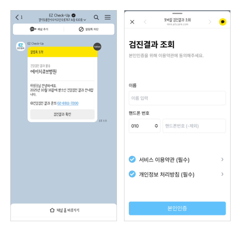 카카오톡의 EZ Check-UP을 통해 검진 결과지를 수령하는 경우에는