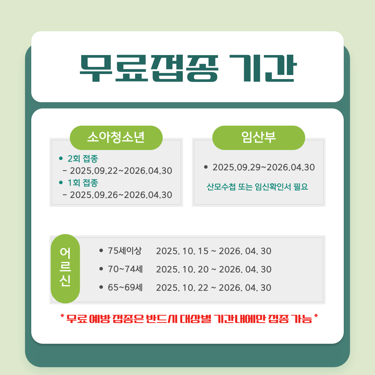 2025년 독감(인플루엔자)예방 무료& 유료 접종 안내드립니다.