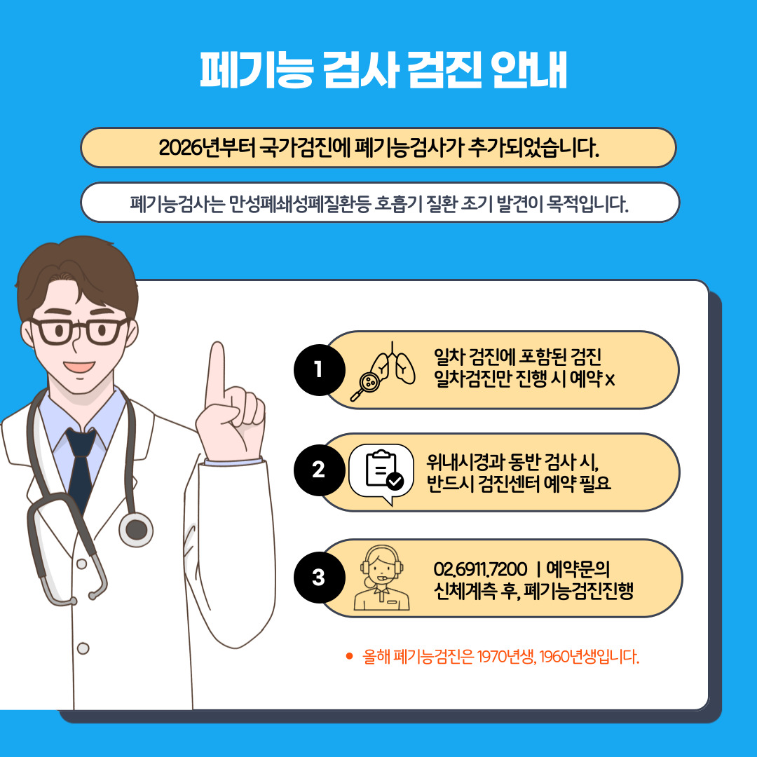 2026년부터 국가검진에 폐기능검사가 추가되었습니다.