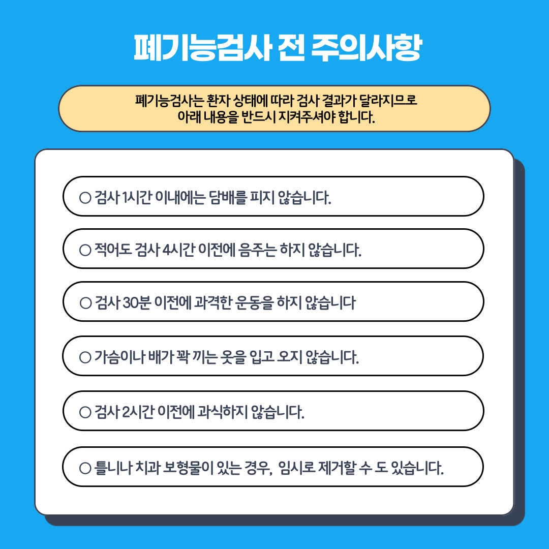 천식이나 폐섬유증, 만성폐쇄성폐질환(COPD)과 같은 호흡기 질환을 조기발견하는데 도움이 되는 검사입니다.
